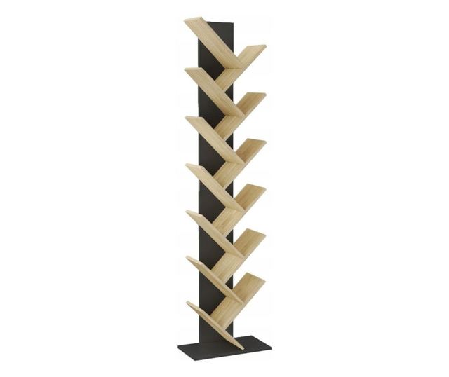 A könyvespolc függőleges szerkezete 8 ferdén elrendezett polcot tartalmaz, amelyek tökéletesek könyvek, magazinok, mappák vagy dísztárgyak tárolására és bemutatására.