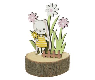 Decoratiune pe lemn, iepuras cu flori, 7.5x10 cm