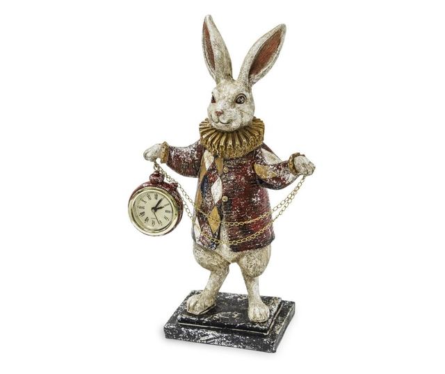 Figurina iepure cu ceas, Rossana Collection, 30x18x8.5 cm. Ceasul este functional, cu baterie.