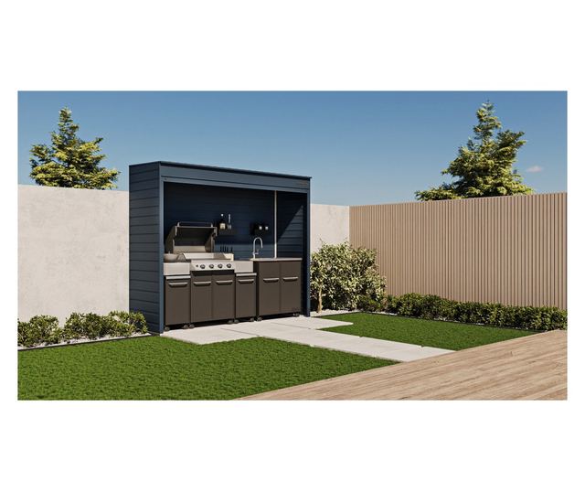 Kerti Ház Parkolóbox BarbequeBOX SZÜRKE ANTRACIT/BARNA, 2400x2260x800mm, komplett rendszer grillezővel és tartozékokkal