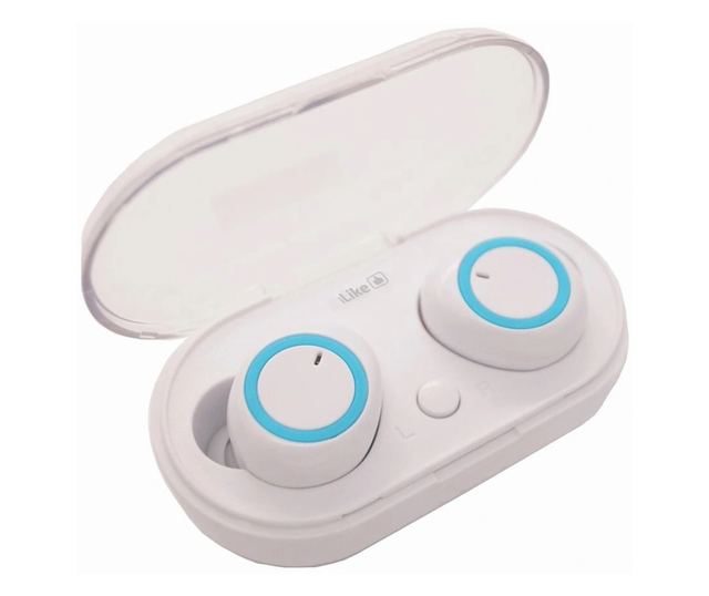 ILike IBE01 in-ear audio fülhallgató, vezeték nélküli, Bluetooth 5.0, IPX4, Extra Bass, töltőtok, fehér/kék