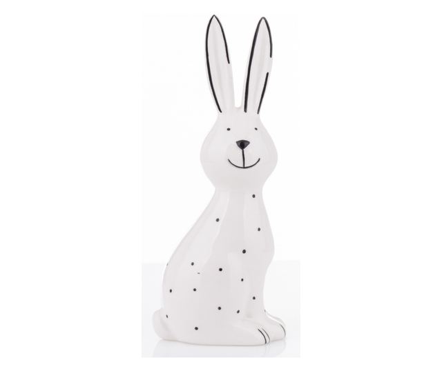 Figurina ceramica iepuras, alb/negru, 20x8x5 cm
