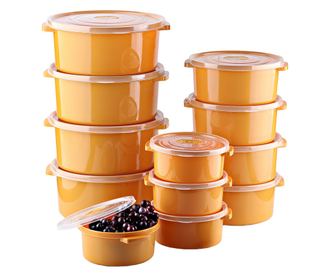 12 db-os ételtároló készlet (4X500 ml, 4X1000 ml, 4X2000 ml), narancssárga, légtelenítő szelepes tetővel