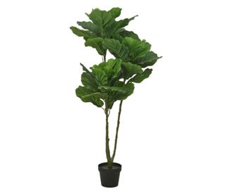 Mesterséges Ficus Lyrata növény 128 cm, levelekkel, valósághű megjelenés, beltéri használatra, fekete cseréppel együtt