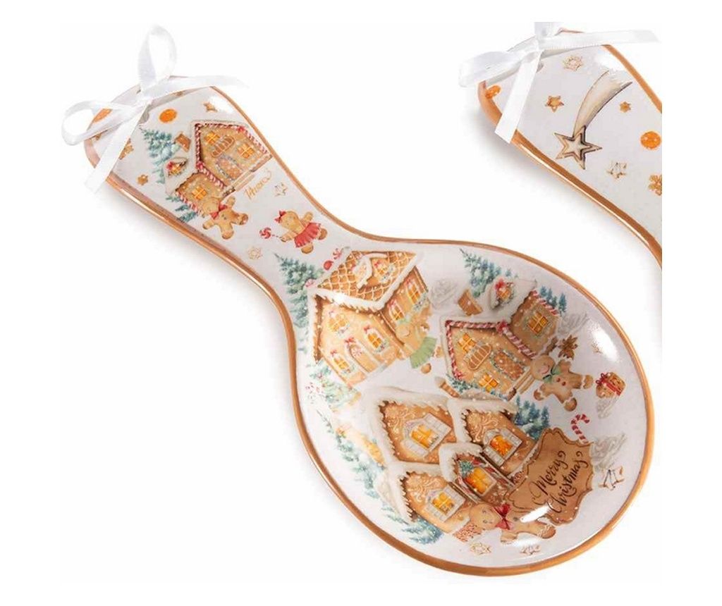 2 darabos, többszínű kerámia karácsonyi kanáltartó készlet, 8,5 x 24 cm