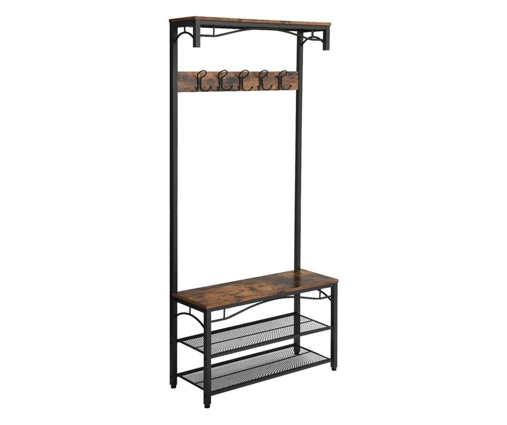 Fogas 2 cipőtartó polccal, Vasagle, pad, forgácslap és fém, fekete, 80x30x178,5 cm